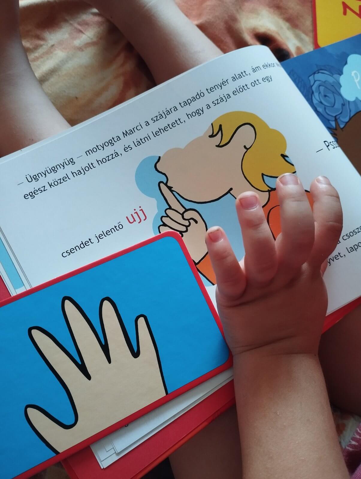 Elkezdtük végre a szókimondókát és mindketten nagyon szeretjük. Engem teljesen lenyűgöz a hatása, hogy a kislányom mennyire élvezi, hogyan rakosgatja a kártyákat a könyvhöz. A kis 5 hónapos fiunkat is már most próbálom bevonni, és mutogatom neki a kártyák képes felét.
